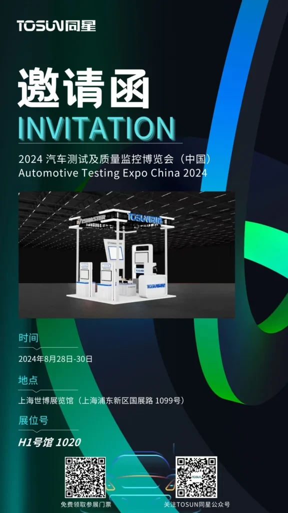 TOSUN sincerely invites you to attend the upcomingAugust 28-30, 2024InShanghai World Expo Exhibition & Convention Center Hall 1Automotive Testing Expo China 2024 was organized.
