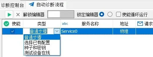 In order to increase the flexibility of diagnostic configuration in the test steps, 4 types are designed for selection, which mainly contain: Normal Step, Select Existing Configuration, Seed and Key, and Tester Online. These 4 types basically cover all the mainstream diagnostic process requirements in the market, and the characteristics of each type are described in detail below. As shown in Figure 5-6.