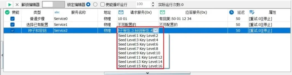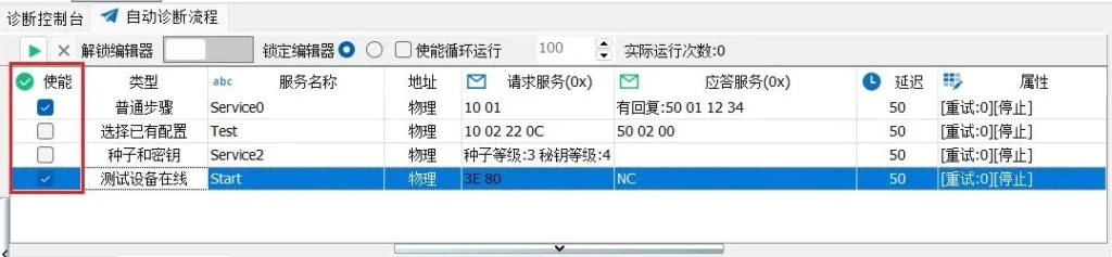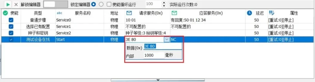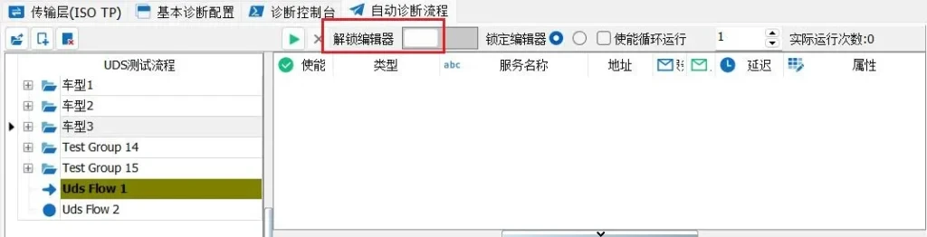 In the UDS test process area, right-click Create to create a new UDS process, double-click the process to enter, unlock the logician, and you can set the number of times this process can be run in a loop, the default is not to enable the loop. As in Figure 5-4.