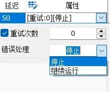 In the properties, you can set the response to an error and whether this instruction stops or continues to run, as shown in Figure 5-13: