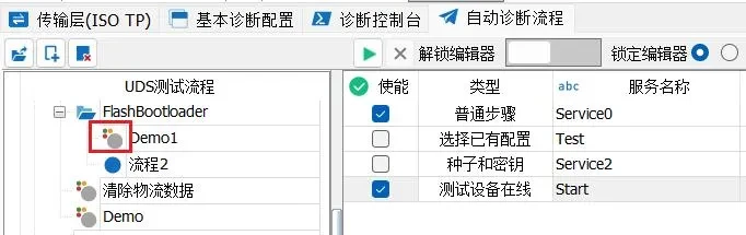 [1] Switching UDS Processes: Switch to the current UDS process node. Double-click the node, you can also achieve the effect of switching to the process node. After switching to the node, the node icon and background color are blue, and the node process on the right expands to show the detailed diagnostic steps included in the UDS process. Figure 5-2.