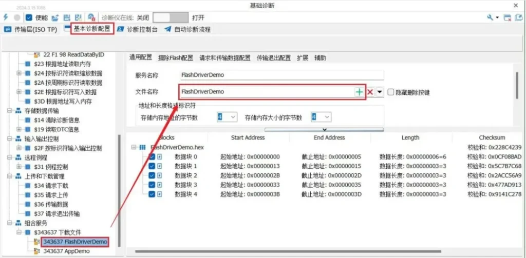 In addition, when the download file is loaded, the system variable controller generates the per-block checksum, and the total checksum, the first address and length of the download file according to the selected checksum algorithm. If the conforming diagnostic service has been added, the download file is loaded and the download file-related variables are associated with the basic diagnostic service, these associated variables will be changed at the same time as the download file is replaced with minimal Project modification to realize the flexible switching of files.