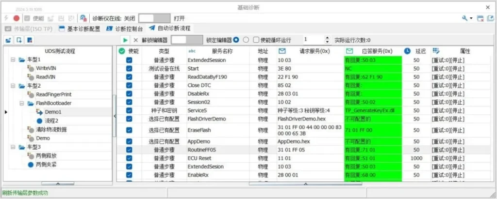 TSMaster automates diagnostic processes, allows you to quickly configure multiple diagnostic processes and set up loops and register system variables for external calls, etc., as described in detail below.