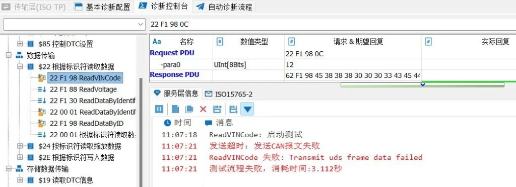[3] Use the normal read command to read the VIN code returned by the vehicle.