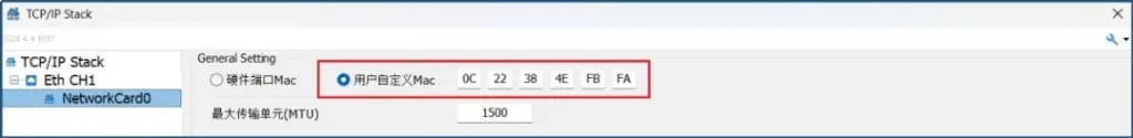 ▲ Step1:Find the main menu [Hardware] -> [TCP/IP Stack], as in Figure 3-1.