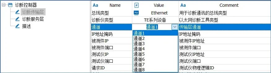 ▲ Step3: Set the on-board Ethernet transport layer parameters according to the configuration of the ECU, such as diagnostic instrument type, channel, IP address of the device under test, and other Ethernet parameters and security access algorithms. The specific operation process is expanded in section 3 below.