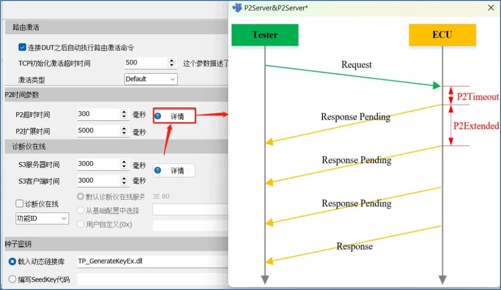 P2 extension time]: When the diagnostic tool sends out a diagnostic message, and the ECU under test is too late to respond within the P2 timeout period, it replies with a frame 7F XX 78 message to tell the diagnostic tool that it is too late to respond, and it needs to extend the waiting time before replying, and then after the ECU sends out a delayed waiting message, it switches the waiting time parameter to the P2 extension time. After the ECU sends a delayed wait message, it switches the wait time parameter to P2 extended time.