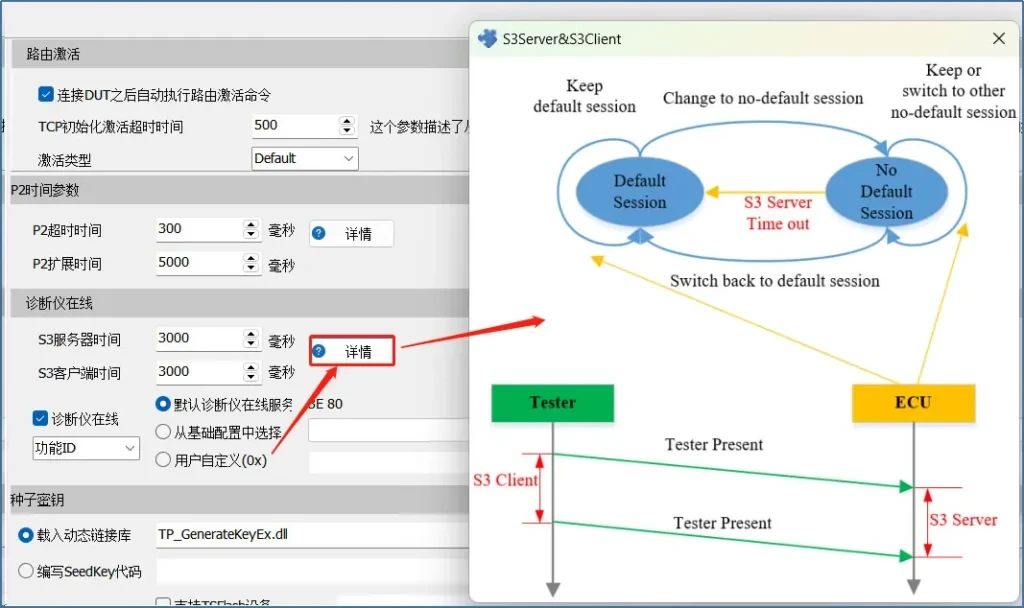 [S3 Client Time]: indicates the time interval for sending TesterPresent frames as the diagnostic Tester side.