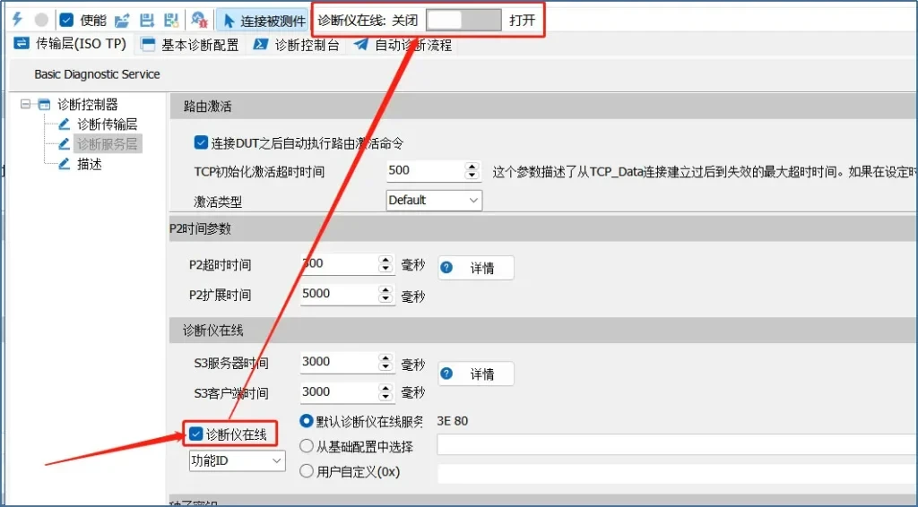 - Diagnostic Tester Online TesterIsPresent: whether to start the Diagnostic Tester Online command.