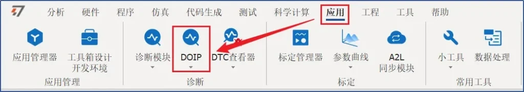 ▲ Step1: DoIP is located in the main menu [Application] -> [DoIP], as in Figure 2-1.