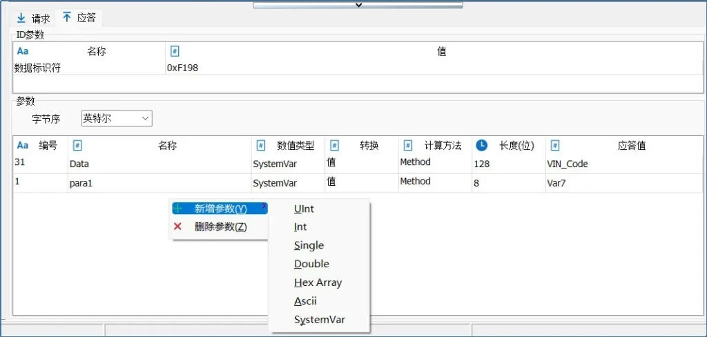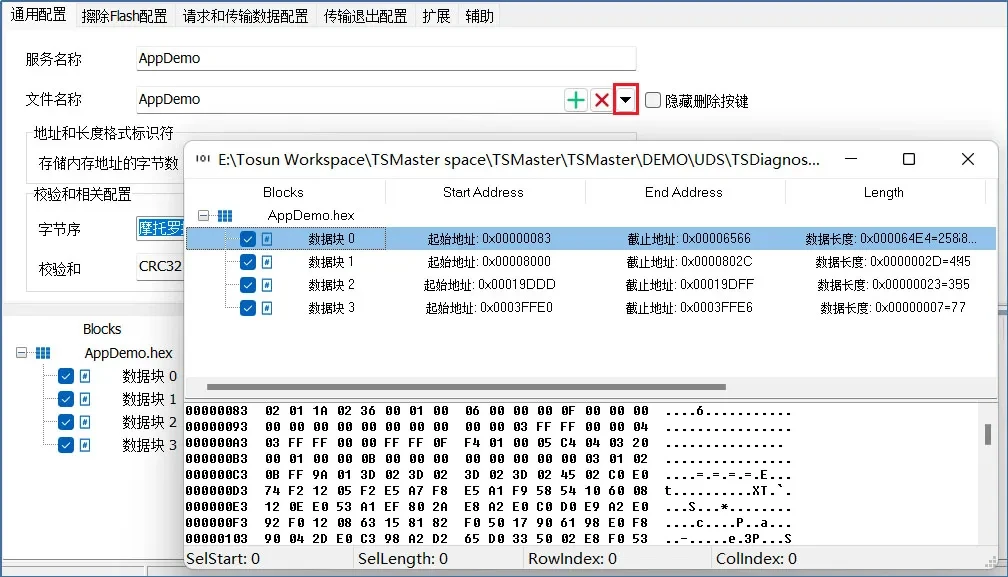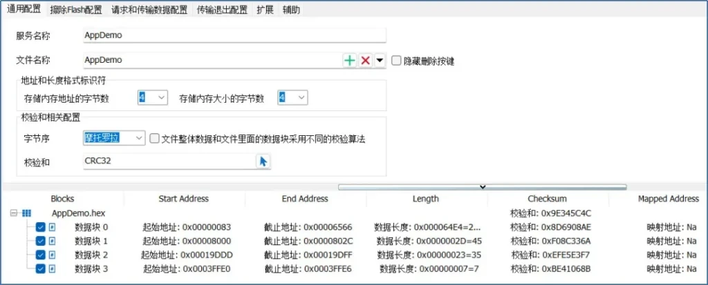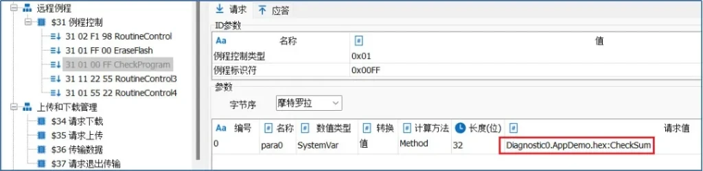In addition, when the download file is loaded, the system variable controller generates the per-block checksum, and the total checksum, the first address and length of the download file according to the selected checksum algorithm. If the conforming diagnostic service has been added, the download file is loaded and the download file-related variables are associated with the basic diagnostic service, these associated variables will be changed at the same time as the download file is replaced with minimal Project modification to realize the flexible switching of files.