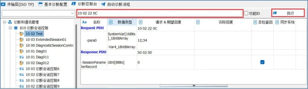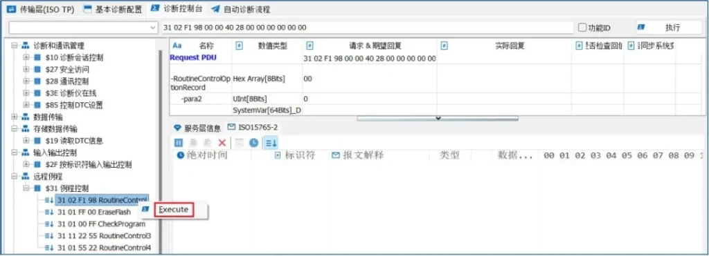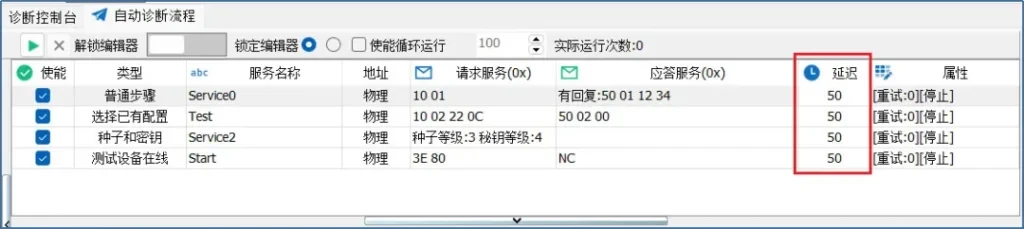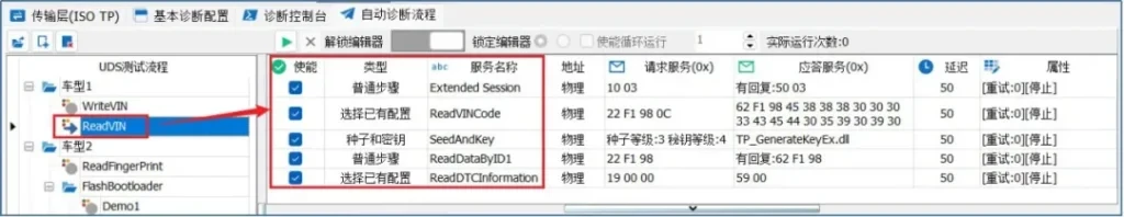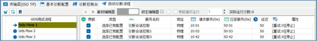 [2] Start UDS process: Start the diagnostic process for this node. After clicking this option, the diagnostic module automatically executes the diagnostic steps from top to bottom according to the configuration on the right.