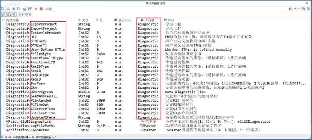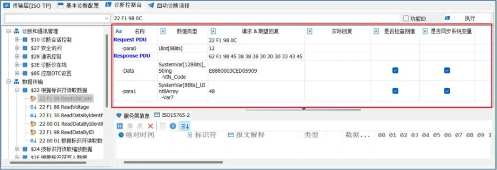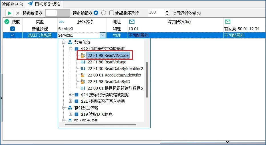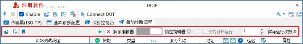 TSMaster automated diagnostic process, you can quickly configure multiple groups of diagnostic processes and can set up a loop run and register system variables for external calls, etc., as described in the following.