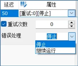 In the properties, you can set the response to an error and whether this instruction stops or continues to run, as shown in Figure 7-13: