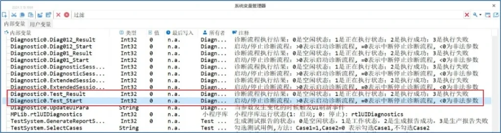 After adding a new service to the Composite Diagnostic Service of the Basic Diagnostic Configuration, the System Variable Manager will also generate the corresponding system variable: service_name_DataFile, which is the absolute path of the download file, and modification of this variable can control the loading and switching of the download file. As shown in Figure 7-16.
