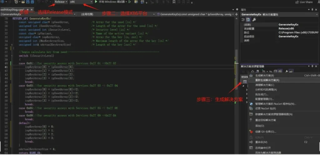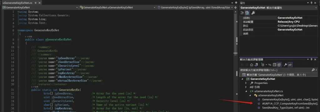 In the TSMaster installation directory, a Visual Studio template project is provided to encapsulate the Seed&Key algorithm in both C++ and C# programming languages. Users can develop based on this template project to get DLL functions that can be loaded directly.
