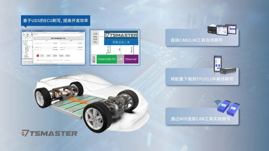 ECU (Electronic Control Unit) is the core component of an automobile's electronic control system, which is responsible for monitoring and controlling the operation of various automobile systems. Diagnostics is an important function of the ECU, when the vehicle is in operation, the sensors throughout the vehicle can track the vehicle electrical or electronic system at any time a variety of malfunctions may occur.TOSUN toolchain assists users in the convenient development and validation of troubleshooting-related functions and the brushing of UDS-based protocols..