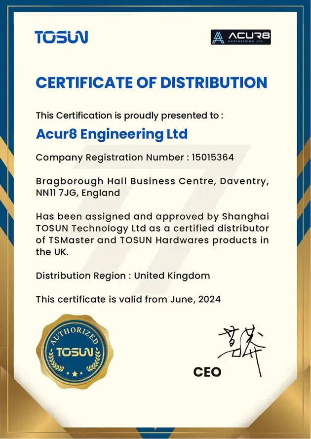 Recently.Shanghai TOSUN Technology Ltd. (hereinafter referred to as "TOSUN") formally signed Acur8 Engineering Ltd to establish a long-term partnership with it.This is an overseas distributor developed by TOSUN in the European market, marking the breakthrough progress of TOSUN in the global market map.