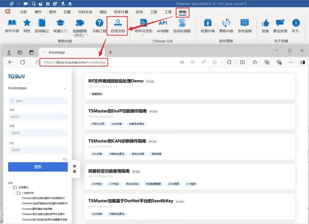 08, new: in the help menu to add online documentation, link to TOSUN knowledge base