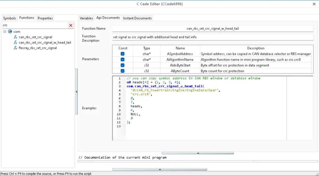 com.can_rbs_set_crc_signal_w_head_tail API interface (set the signal to CRC type and set the corresponding algorithm before performing RBS simulation)