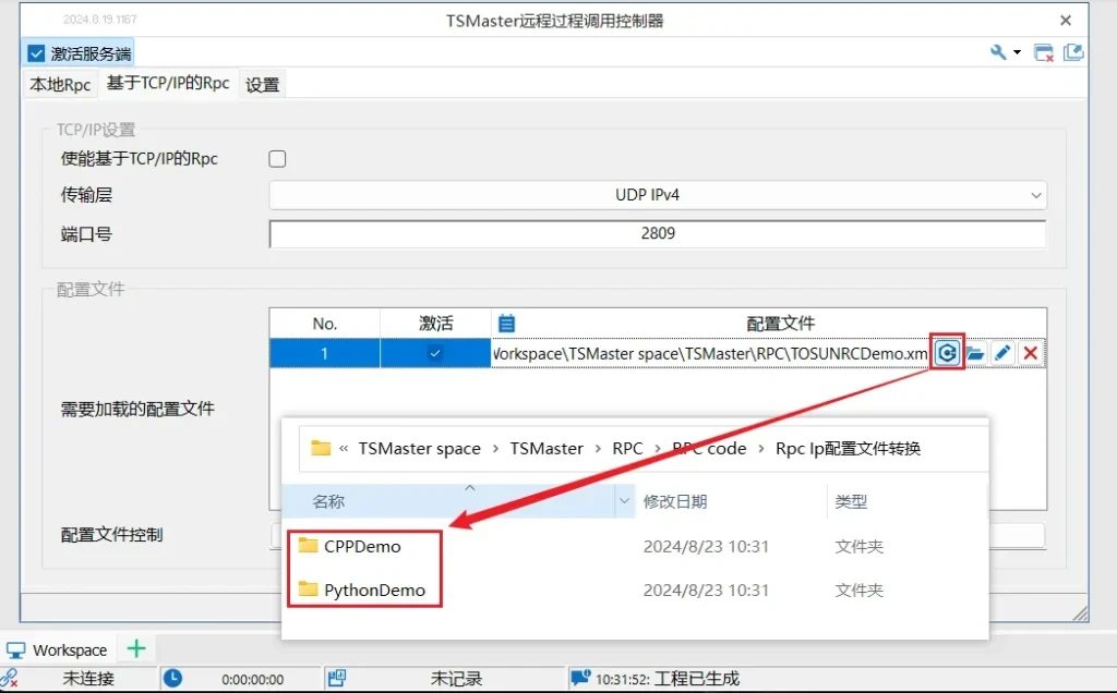 TSMaster remote procedure call profiles can be converted to Cpp and Python projects.