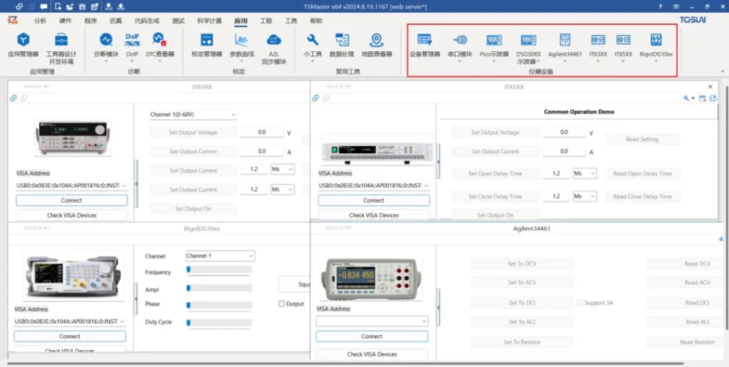 As the number of users of TSMaster software grows, we are constantly updating the software version and upgrading related features.TSMaster version 2024.08 software has been updated with a superb number of useful features, including:Device Manager supports IT63XX, IT65XX, Agilent34461 and RigolDG10xx series products, and "Online Documentation" is added to the Help menu bar, which allows you to click directly to view the TSMaster Knowledge Base.These features greatly satisfy the needs of our engineer friends. Here's a look at exactly what features have been added!