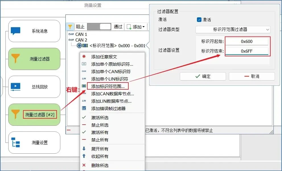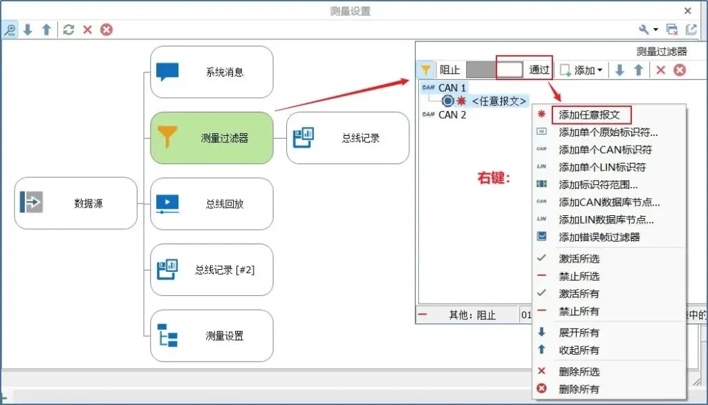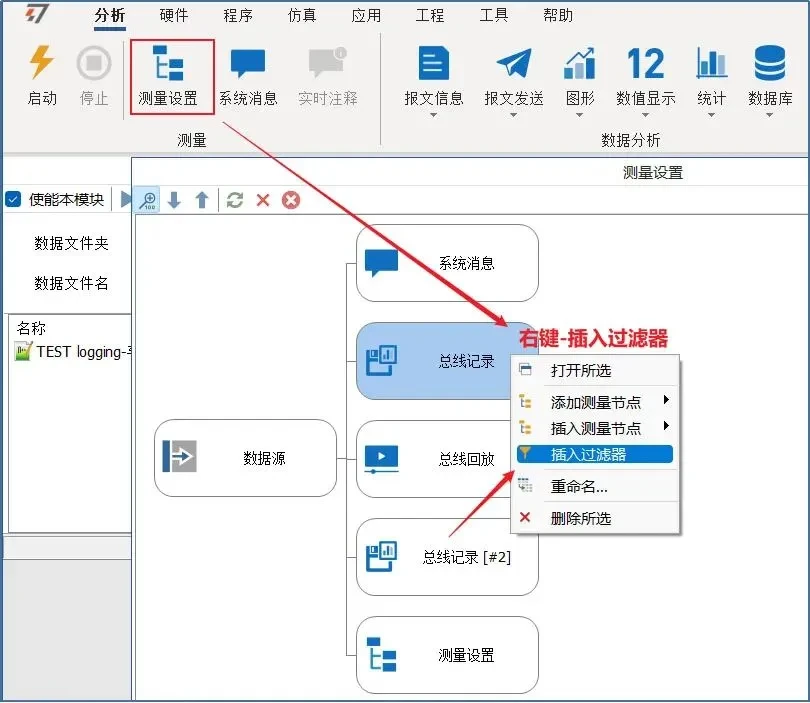 Open [Measurement Setup], select "Bus Logging" and "Bus Logging [ #2]" respectively, and right-click - Insert Filter for each.