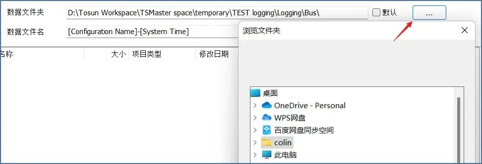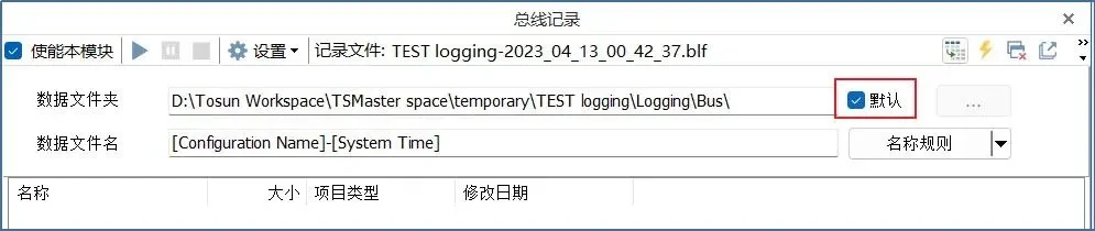 - Case1: When "Default" is checked, the log files are saved in the default project \Logging\Bus\ folder, as shown in Figure 3.