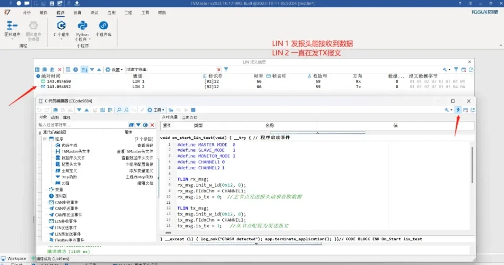 2. Through the TSMaster built-in C applet to achieve custom LIN scheduling table