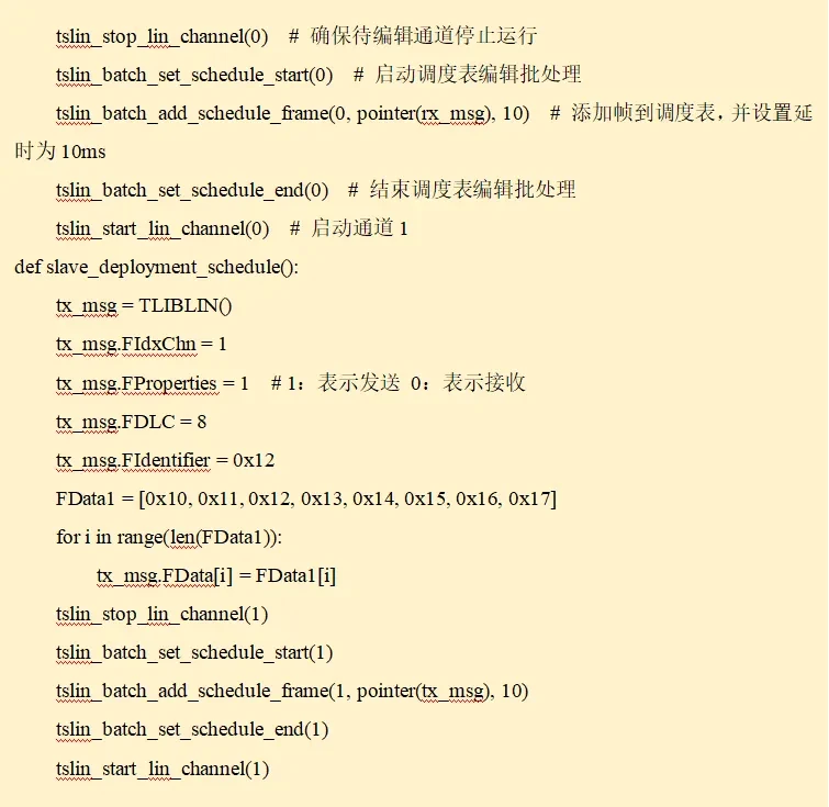 Keywords in this article: LIN (Local Interconnect Network), scheduling table, secondary development interface, C applet example, python example