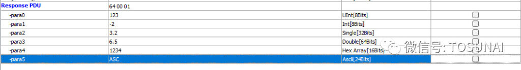 [4] Para3, data type is Double, data length is 64Bits, input is 3.2, then the corresponding bytes are 0x40, 0x09, 0x99, 0x99, 0x99, 0x99, 0x99, 0x99, 0x9A.