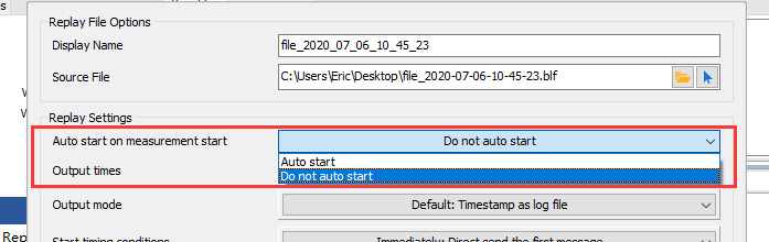 As Log File. Send the first message on its timestamp: The timestamp of the root Log file determines when to start playing the message. For example, if the timestamp of the first message in the log file is 15s, then after connecting to the device, it will wait until 15s have passed before starting to play back the message.