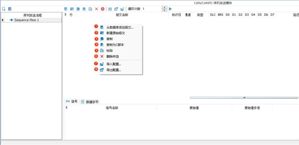 Find [CAN/CAN FD Sequence Transmitter Module] in the toolbar [Test] -> Add CAN/CAN FD Sequence Transmitter Module, as in Figure 1.