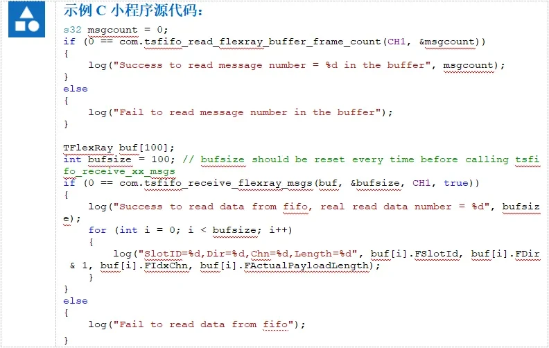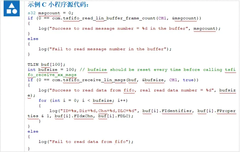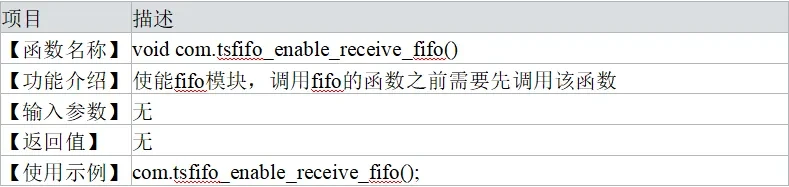 Before using fifo to read cached messages, you need to call the com.tsfifo_enable_receive_fifo() function. This subsection will provide a simple example, which can be found in the following steps.