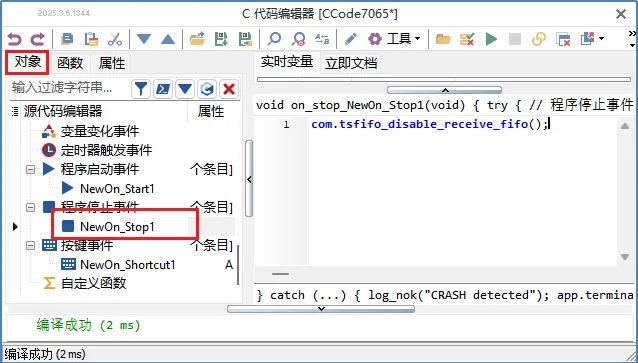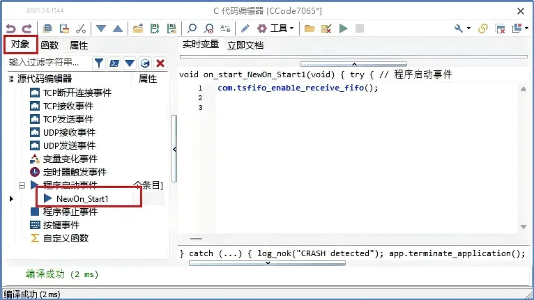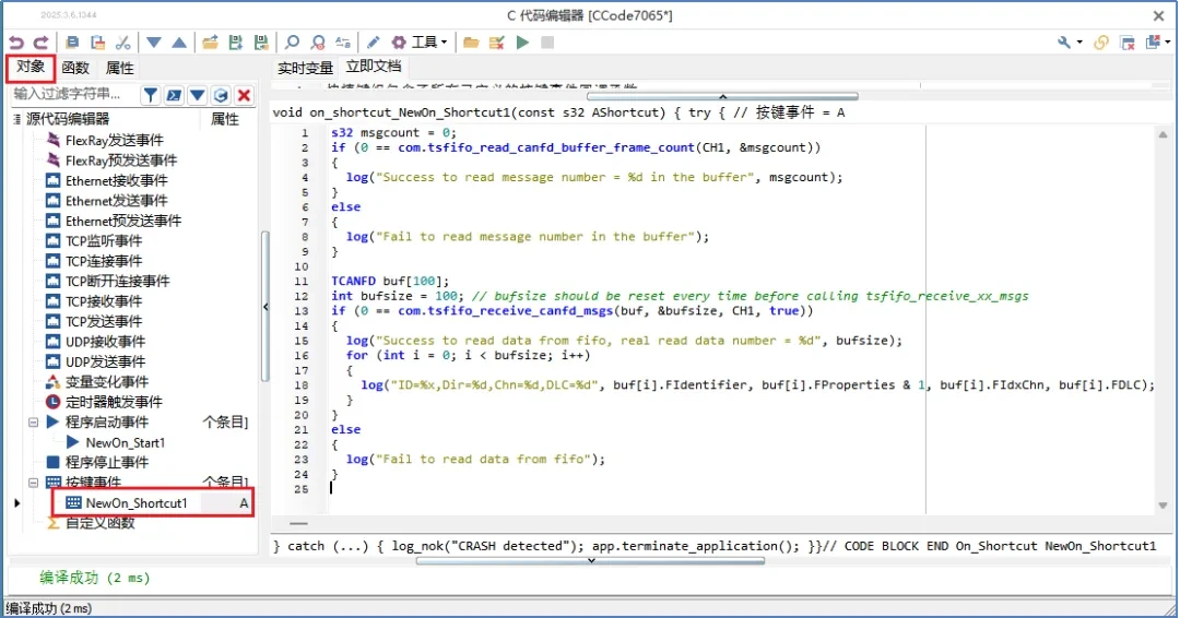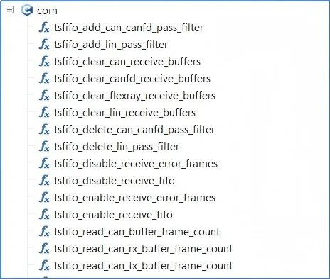 TSMaster's applet module provides callback events such as receive event, send event and pre-send event, as shown in Figure 1. compared with the callback function, the fifo function is more flexible and convenient to use, and it can be used in any module, which is no longer limited to the callback events such as receive, send, etc. The related fifo function can be found in [Design] - [C applet] - [Function], as shown in Figure 2. Related fifo functions can be found in [Design] - [C applet] - [Function], as in Figure 2.