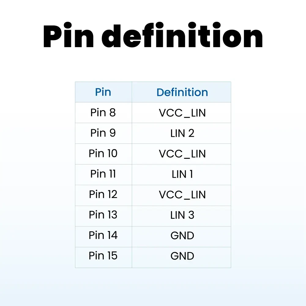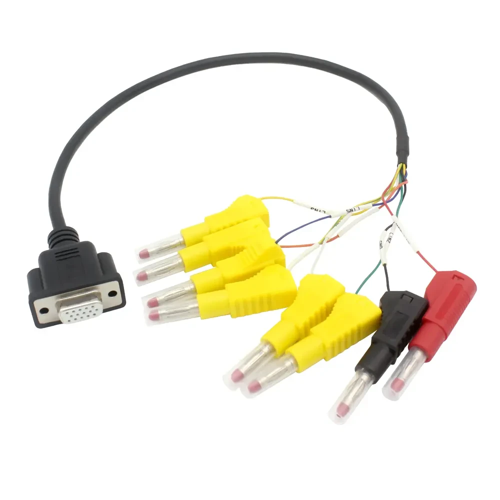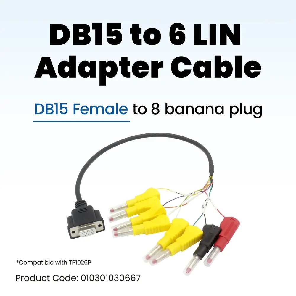 这款DB15 转 6 LIN 线缆(DB15 to 6 LIN Adapter Cable)是为 TP1026P LIN 总线设备开发、用于多通道转接。通过 DB15 D-Sub(Female)接口,可同时输出 6 路 LIN 通道 + 电源端口,并以 8 个香蕉插头(6 黄 + 1 红 + 1 黑)的形式提供,方便快速接入各种测试平台和仪器。