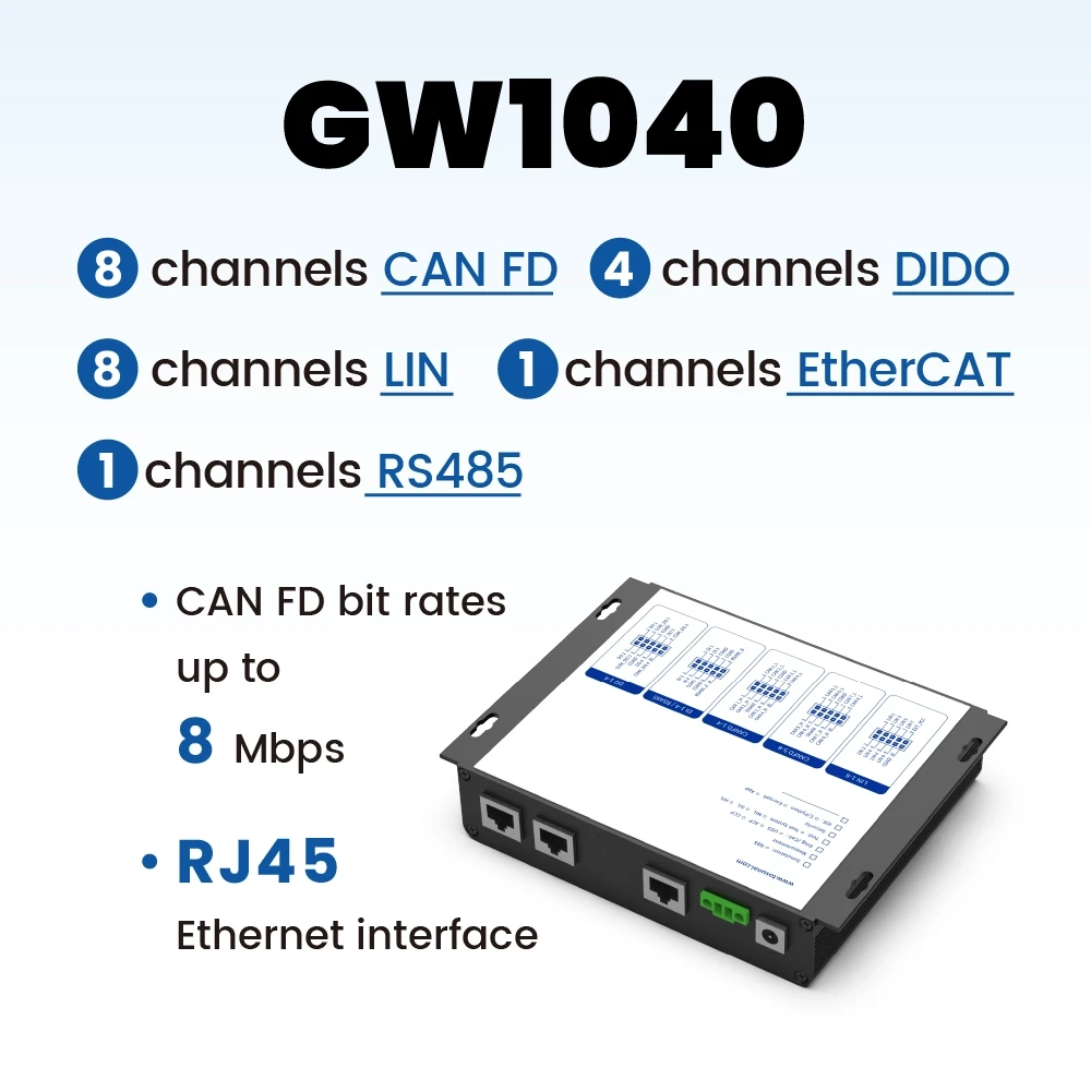 GW1040 – 多通道 CAN FD 与 LIN 高效仿真通信网关