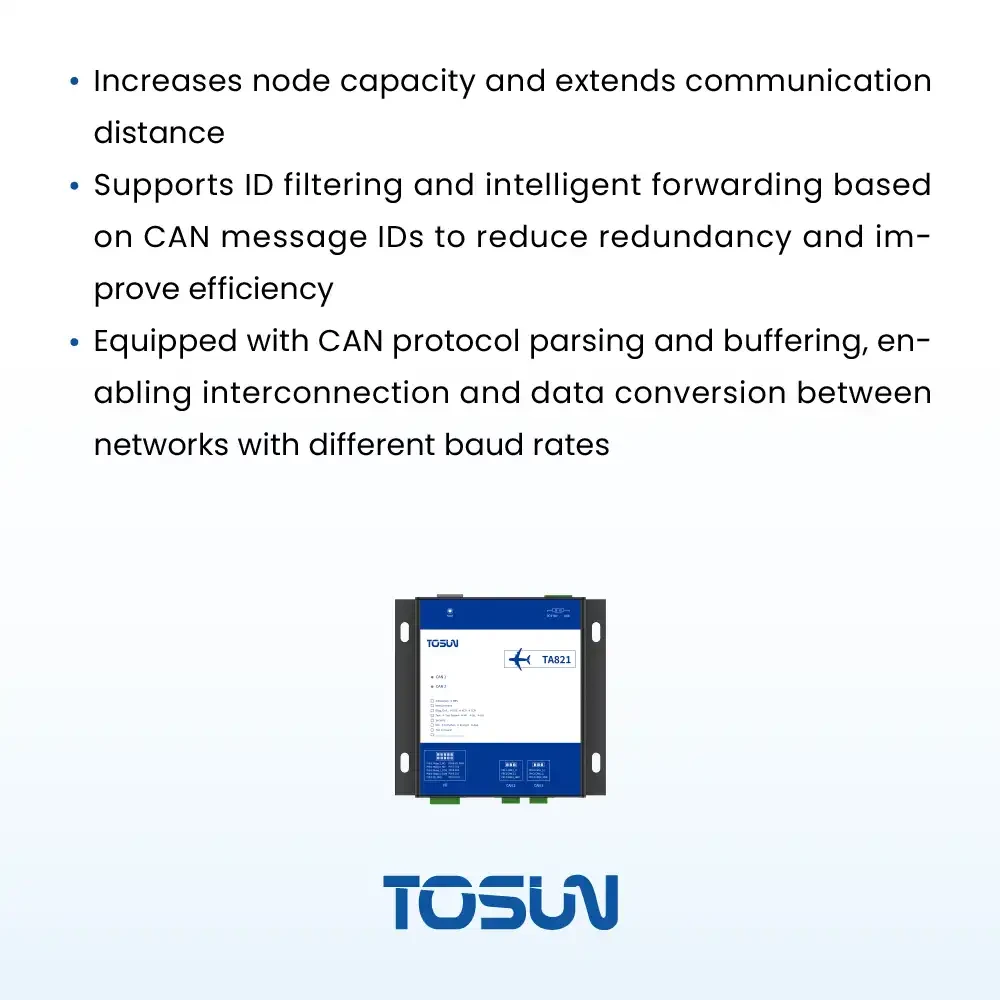 - 支持ID 过滤,根据CAN 报文ID 进行智能转发,减少冗余通信,提升效率