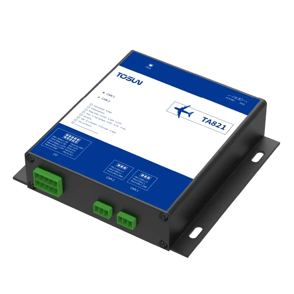 TA821 是同星智能推出的一款多通道CAN 总线接口设备,集成2 路CAN 接口,兼具2路数字输出(DO)和4 路数字输入(DI)接口。设备通过以太网接口与PC 连接,采用Windows和Linux 系统免驱设计,具备良好的系统兼容性。