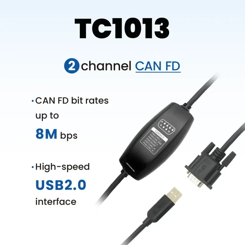 TC1013是同星智能推出的一款双通道CAN FD总线接口设备,CAN FD总线速率最高支持8M bps,产品采用高速USB2.0接口与PC连接,Windows系统免驱设计使得设备具备极佳的系统兼容性。