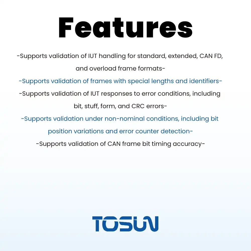 - 支持验证 IUT 的 CAN 帧的位定时功能是否正确