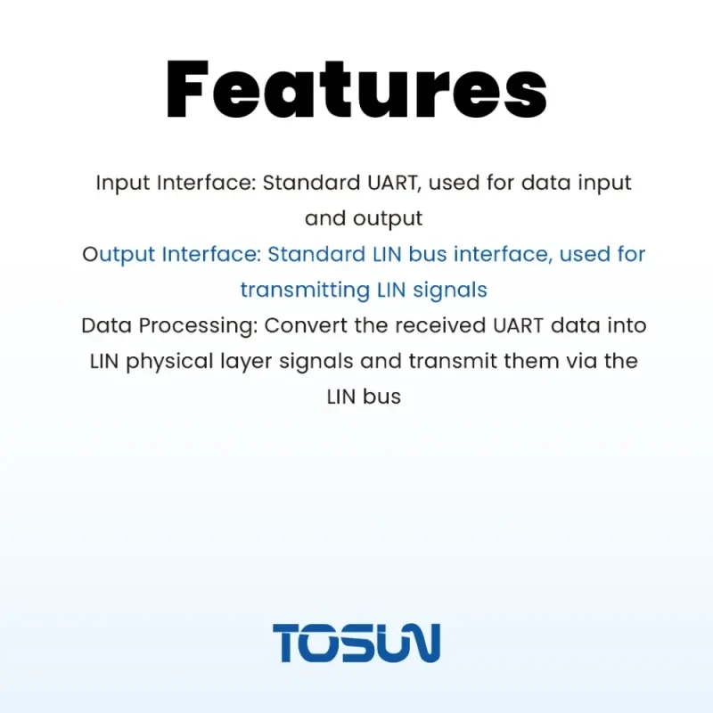 - 输出端:标准 LIN 总线接口,用于 LIN 信号的传输;