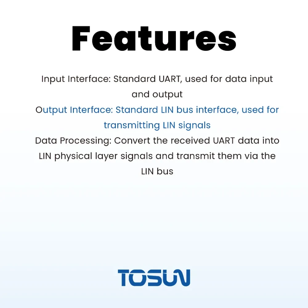 - 数据处理:将接收到的串口数据转换为 LIN 物理层信号,并通过 LIN 总线传输出去。