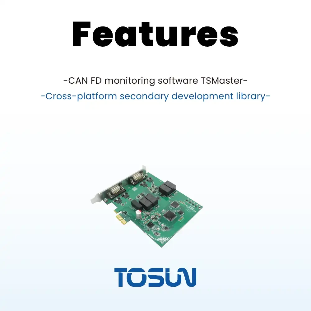 配合功能强大的 TSMaster 软件,支持加载 DBC 和 ARXML 数据库文件,可以很方便地监控、分析、仿真 CAN 总线数据,也可以支持 UDS 诊断、ECU 刷写、CCP/XCP 标定等功能。