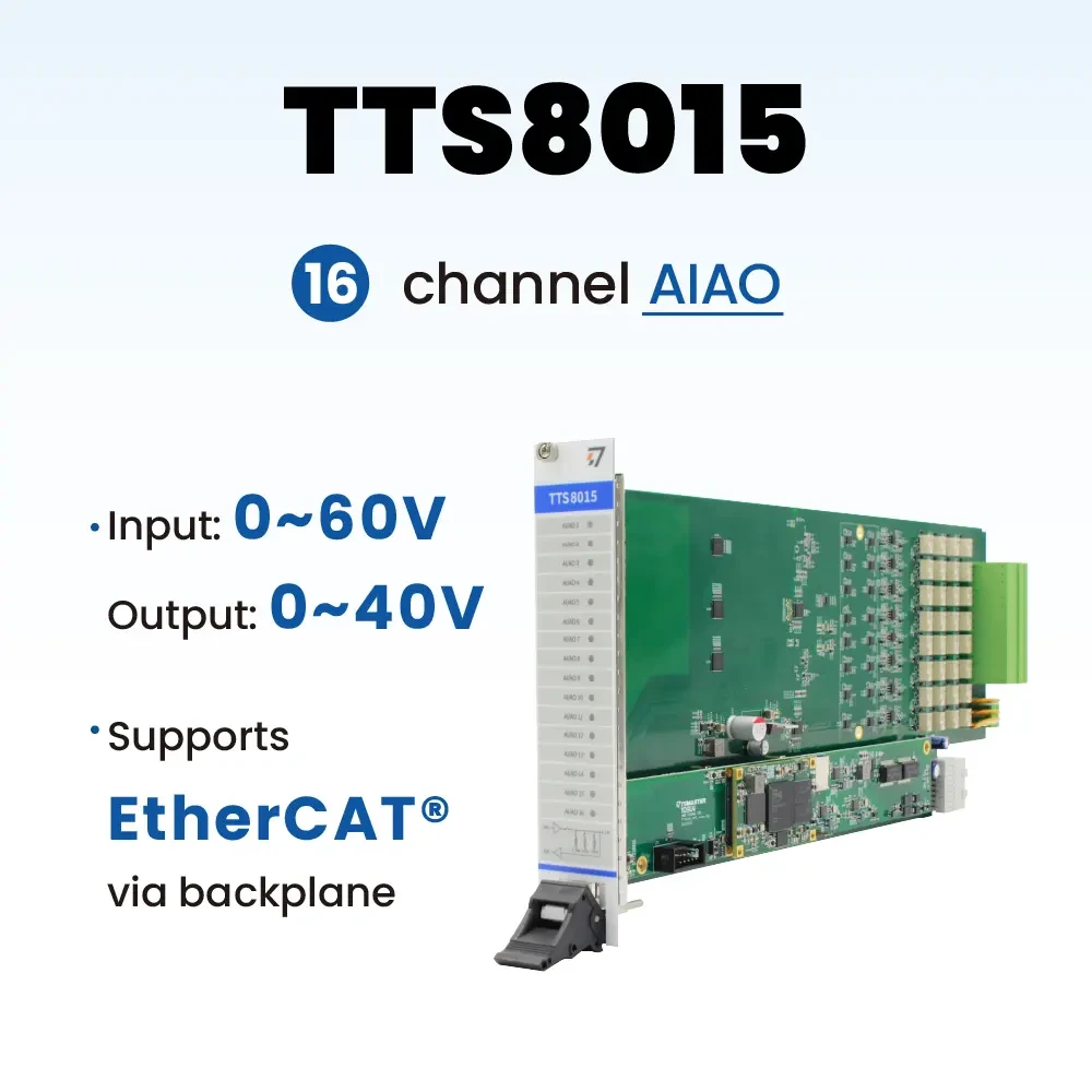 TTS8015 – 16通道模拟IO模块,0–60V电压范围,支持 EtherCAT®通信