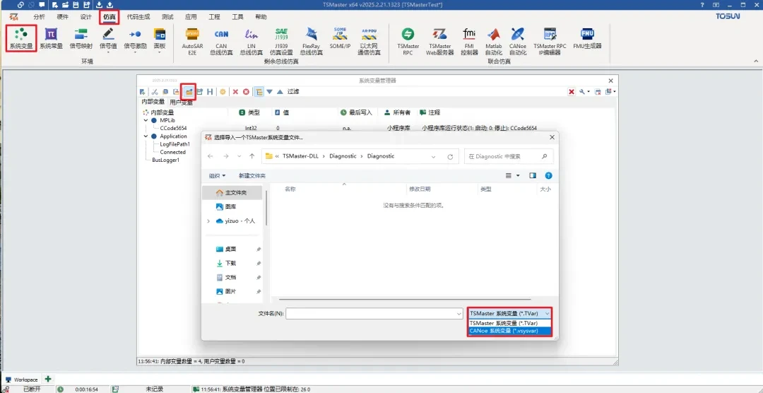 更新功能:支持导入canoe的*.vsysvar 系统变量配置文件。