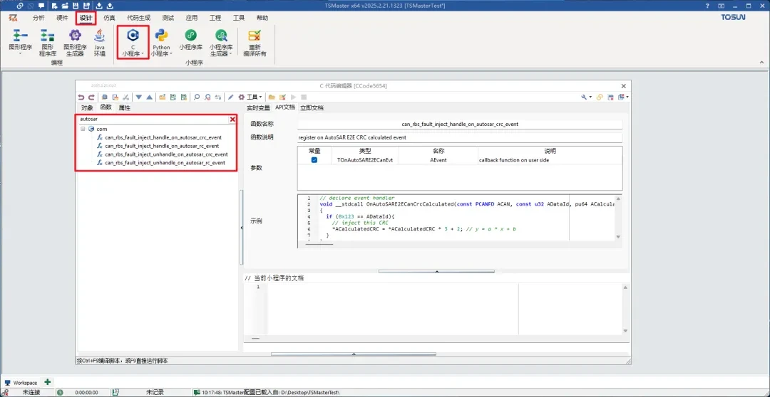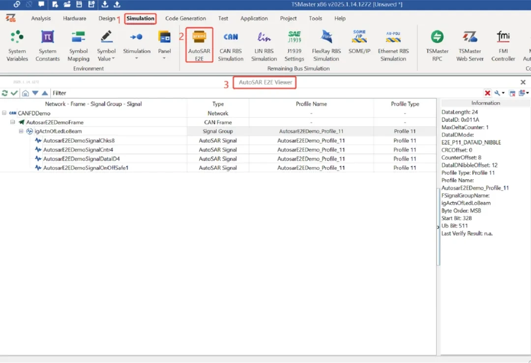 更新功能:TSMaster为用户开发了AUTOSAR E2E仿真模块,实现端到端的数据保护,确保数据在传输过程中不被篡改、丢失或损坏。