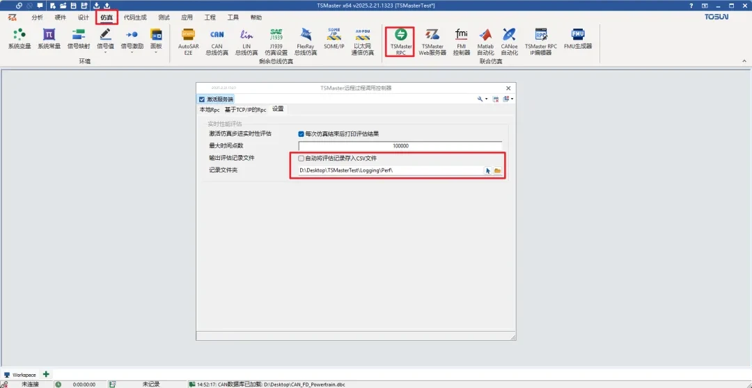 →【仿真】-【TSMaster RPC】-【设置】