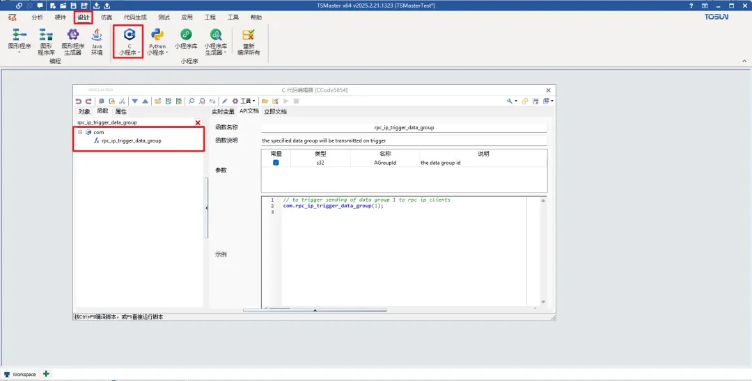 03.【小程序】TSMaster Rpc Ip触发数据组函数接口