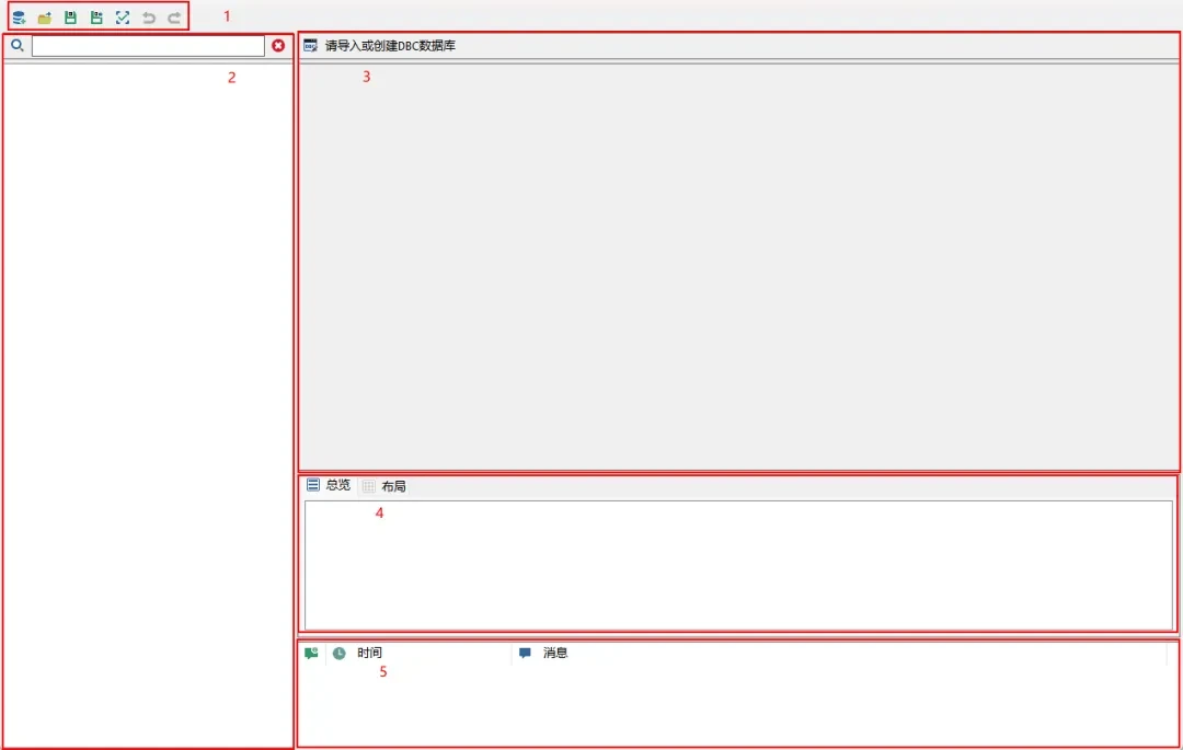DBC编辑器主要包含以下五个功能区: